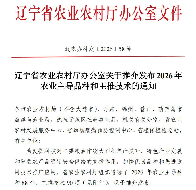 近日,遼寧省農(nóng)業(yè)農(nóng)村廳發(fā)布了2026年農(nóng)業(yè)主導(dǎo)品種和主推技術(shù)通知,遼寧東亞種業(yè)自主培育的東單1331、東科1188入選2026年遼寧省農(nóng)業(yè)主導(dǎo)品種。